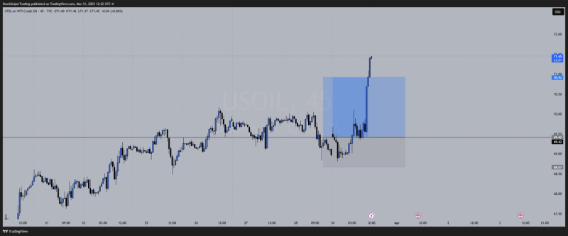- - Price Action: USOIL surged steadily, hitting our first TP at 70.92 within the session.