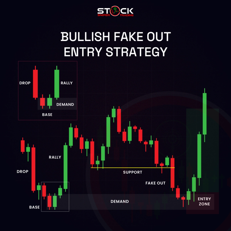 A bullish fake out, or false breakout, typically occurs when the price briefly moves below a level of support, triggering stop-loss orders and enticing sellers to enter the market. However, instead of continuing downward, the price reverses direction and moves upward, catching many traders off guard. This creates an opportunity for traders who recognize the false breakout to enter into long positions, potentially profiting from the subsequent upward movement.