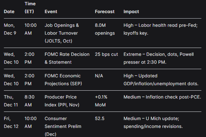 Outlook: Fed Focus Dominates – Cuts, Clarity, and Catalysts Ahead (Dec 9-12)