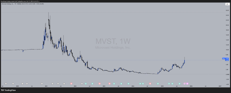 MVST's stock has surged 147% YTD in 2025, driven by EV demand and financial improvements, but remains volatile (20% monthly swings). Below are balanced scenarios, backed by data and analysis as of October 17, 2025. Analyst consensus: "Buy" with $5.50–$6.00 target (12–20% upside from $6.40 close), but short interest at 10.7% adds squeeze potential.