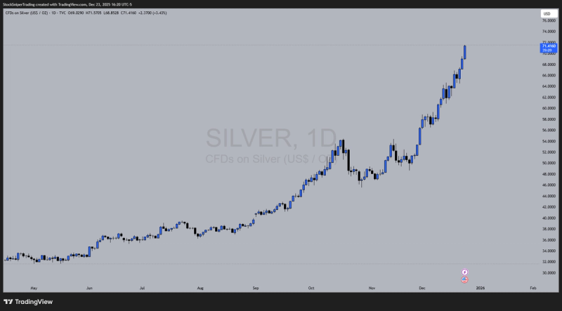 December 23, 2025 — Silver is in the headlines as prices surge above $70 per ounce, reaching historic highs not seen in decades and dramatically outperforming many other commodities this year.