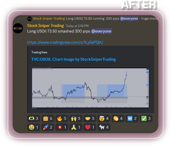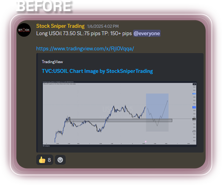 - - Exclusive Trading Signals: Receive timely trade alerts directly on our Discord server, ensuring you never miss out on the opportunities.
