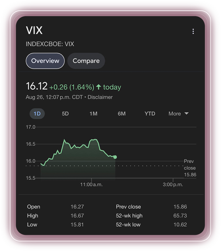 - The VIX (Volatility Index), often referred to as the "fear gauge," measures market expectations of near-term volatility based on options prices for the S&P 500 index.